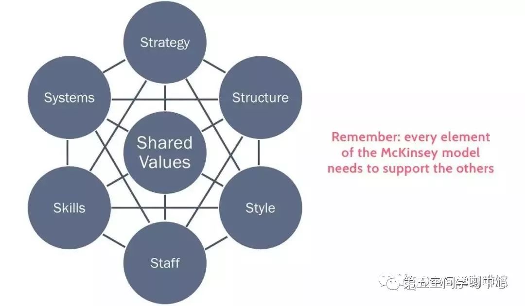 麦肯锡的7-S模型并非为深度分析和重大转型而设计,但非常适合分析公司内在的一致性和耦合性。如果你知道某些方面需要改变,但是不确定要做什么,那么这就是适合你的变革管理模型。 通过分析公司的以下七个方面,以及它们是如何相互影响的,你将能够发现那些需要做出的改变,以创建一个统一的业务方法: 策略(Strategy) 架构(Structure) 系统(System) 共同的价值观(Shared Value) 风格(Style) 工作人员(Staff) 技能(Skills)